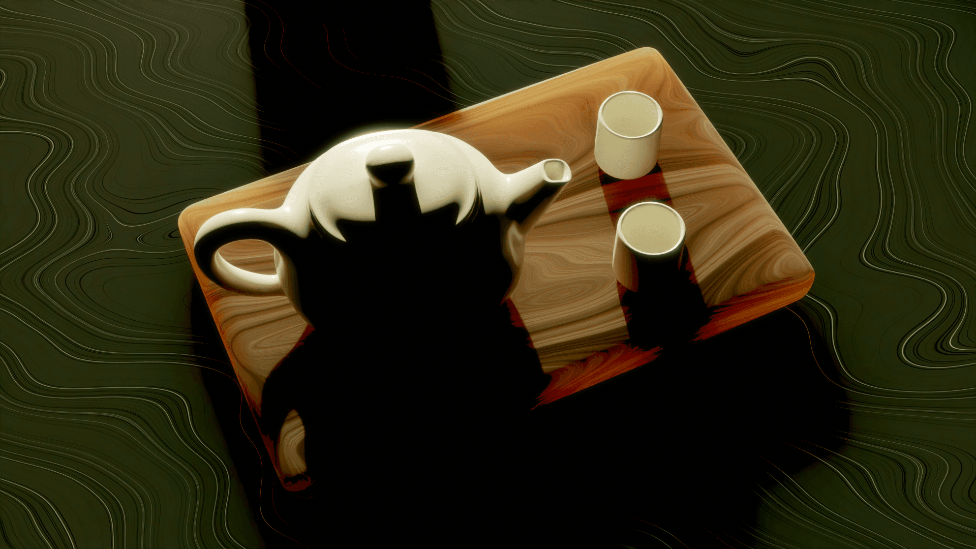 A teapot and cup set created in Blender, rendered with Cycles. A bit of shader practice too.